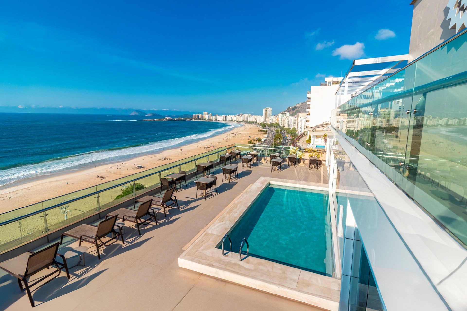 O Arena Copacabana Hotel tem localização central na praia de Copacabana, unindo sofisticação e exclusividade. Nossa cobertura de 2 andares oferece vistas incríveis da praia.
